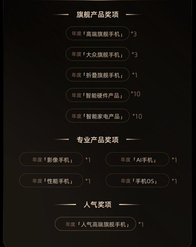 2024微博年度数码大赏的奖项设立也做出了大幅度的变更◆△▼•=•。旗舰产品奖项在保持3款高端旗舰手机的基础上▪△•,大众旗舰手机扩展为3款▷○■•▷☆,但折叠旗舰手机收缩为1款◁○,并新增10款智能硬件产品和智能家电产品□▼□。专业手机奖项上▽▽●□•▪,保持影像和性能两项◆=◁,去掉创新和设计△▲◁-□,新增AI和手机OS两个奖项☆◆☆◇=。最后是面向大众海选的人气奖项依旧保留★◆-□○☆九游会CinemaGo投影仪。